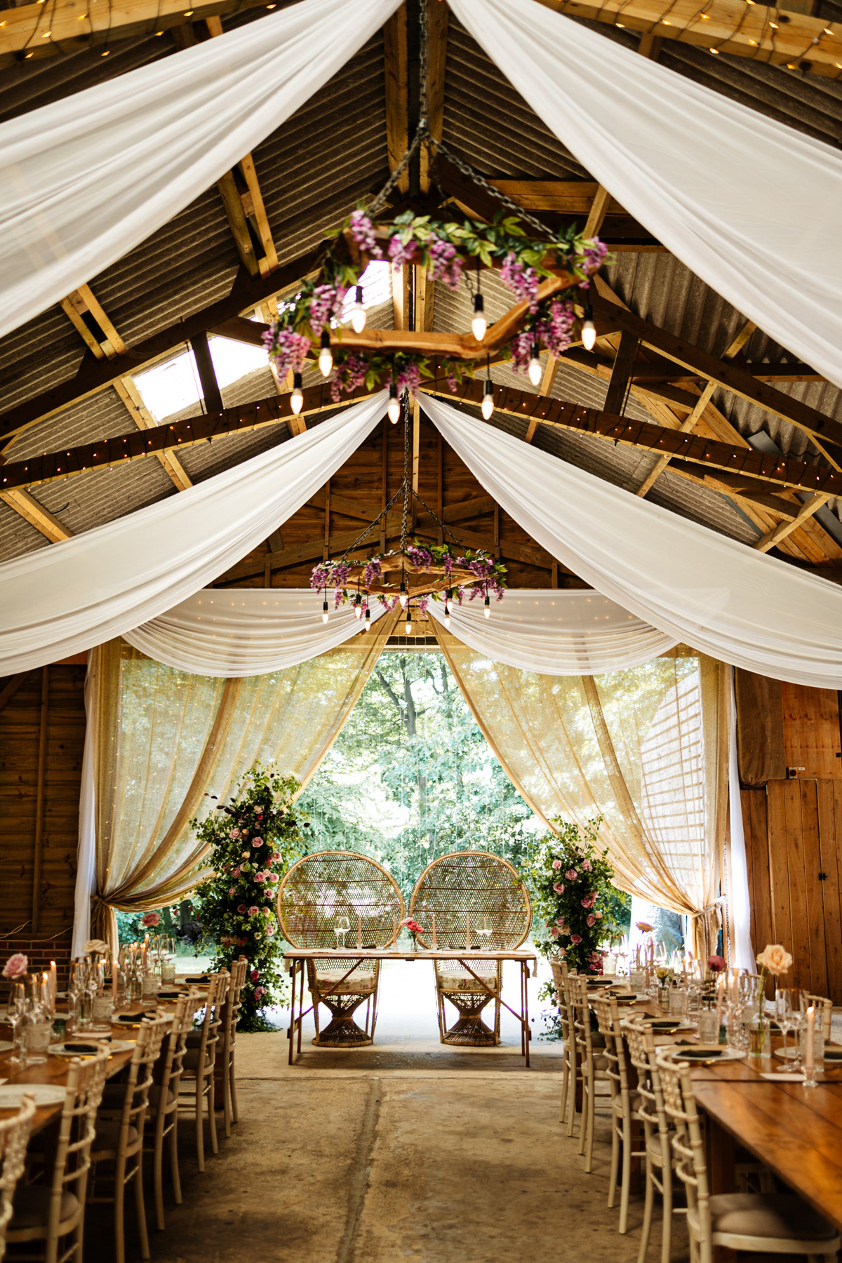 I immediately said yes when asked to photograph this beautiful set-up in the barn and woodlands of Captains Wood Barn and was delighted when it was featured in An Essex Wedding